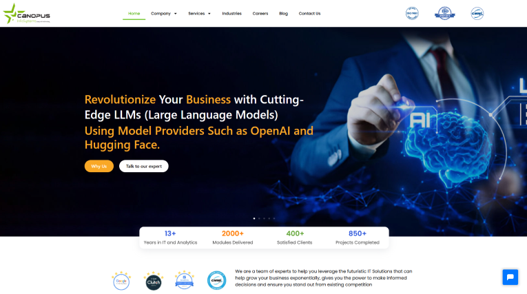 Canopus Infosystems is a tech company that helps businesses with software, AI, cloud, and analytics. They work in various industries like healthcare, retail, and logistics.
